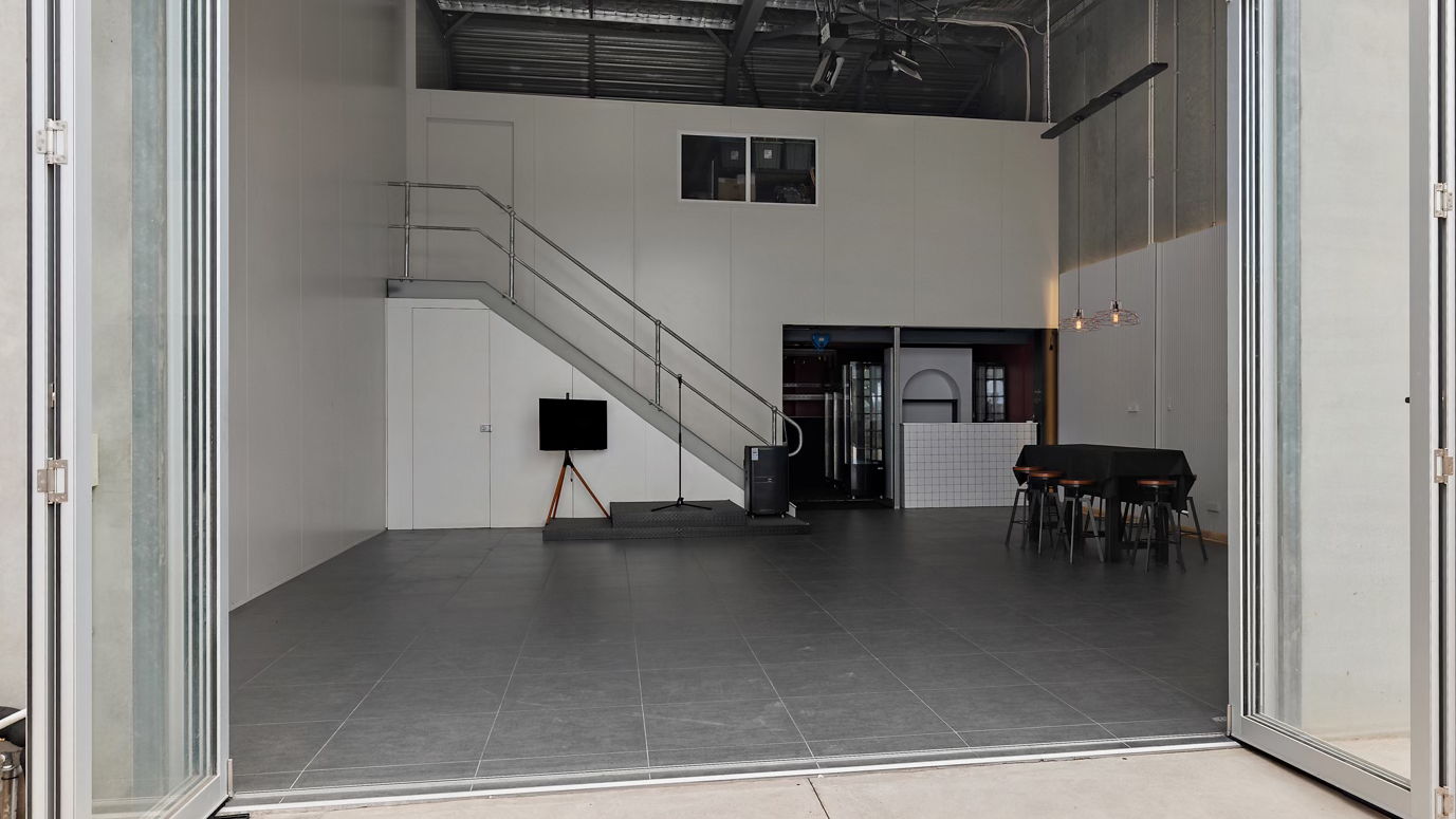 one2four is a private, versatile warehouse venue located at 124 Frederick Street, Welland SA. With high ceilings, polished concrete-look floors, and a clean modern fit-out, the space adapts to whatever you need it to be.